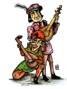 Los juglares y trovadores eran artistas ambulantes en la Edad Media. A cambio de dinero o comida, ofrecían su espectáculo callejero en las plazas públicas, y en ocasiones eran contratados para participar como atracción y entretenimiento en las fiestas y los banquetes de reyes y nobles.